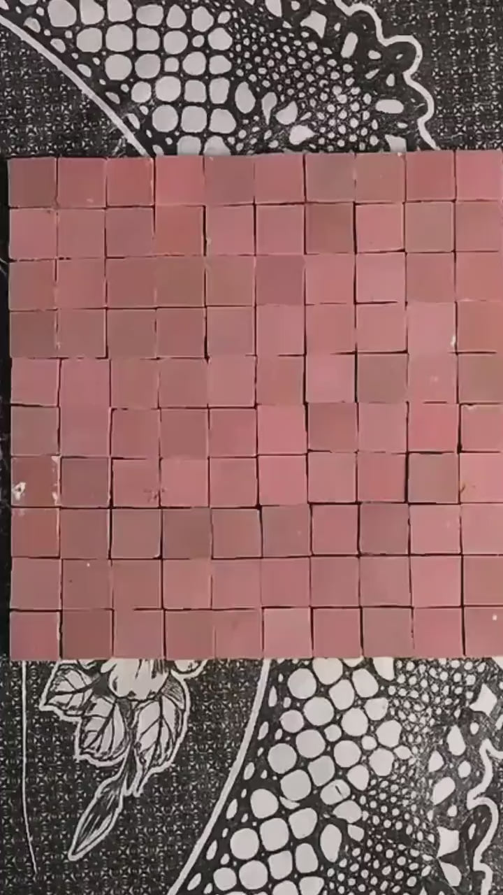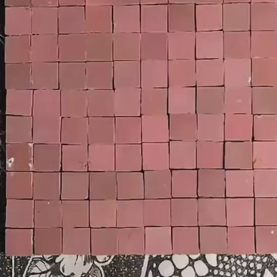 1 in / 2.5 cm pink square micro Zellige mosaic tile sheet in 25cm panel